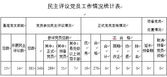 民主评议党员工作情况统计表