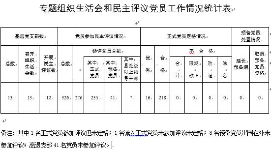 专题组织生活会和民主评议党员工作情况统计表