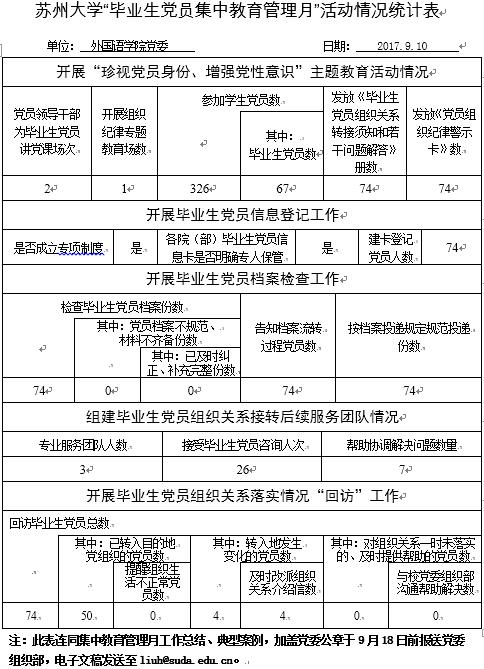 2017年9月日本色情片 “毕业生党员集中教育管理月”活动情况统计表