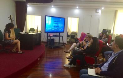 随着比赛的进行,各位选手纷纷展现自己的法语语言能力。虽然大一的同学才学习了一年的法语,但选手们纯正的法语语调让在座的评委老师十分惊喜。尤其是季静同学,她纯正的法语腔调,给在场的评委留下深刻印象。第一部分的比赛结束后,各位评委老师对所有的选手的表现进行了点评。各位评委老师对大一同学法语学习取得的进步表示祝贺,同时也指出了各位选手语音方面存在的问题,比如联诵、发音口型不到位等。评委老师细致的分析让在场的每一位同学受益匪浅。在评分时间,多才多艺的同学们进行了才艺表演,史明璐同学表演了小提琴演奏,赵一丹同学表演了琵琶演奏,让评委们都刮目相看,孙文青同学演唱了一首法文改编版歌曲,优美的嗓音让大家一扫比赛的紧张。