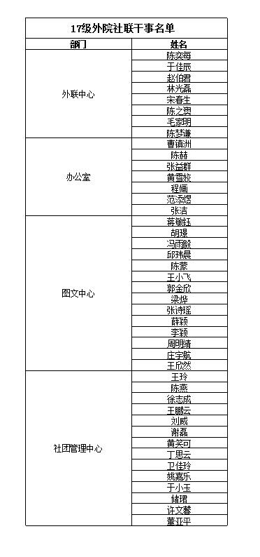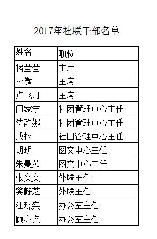 2017科协名单理事长:孙浩然 杨易育 王佳慧 柏司原 秘书处部长:汝琳 张秋芳 周欣安秘