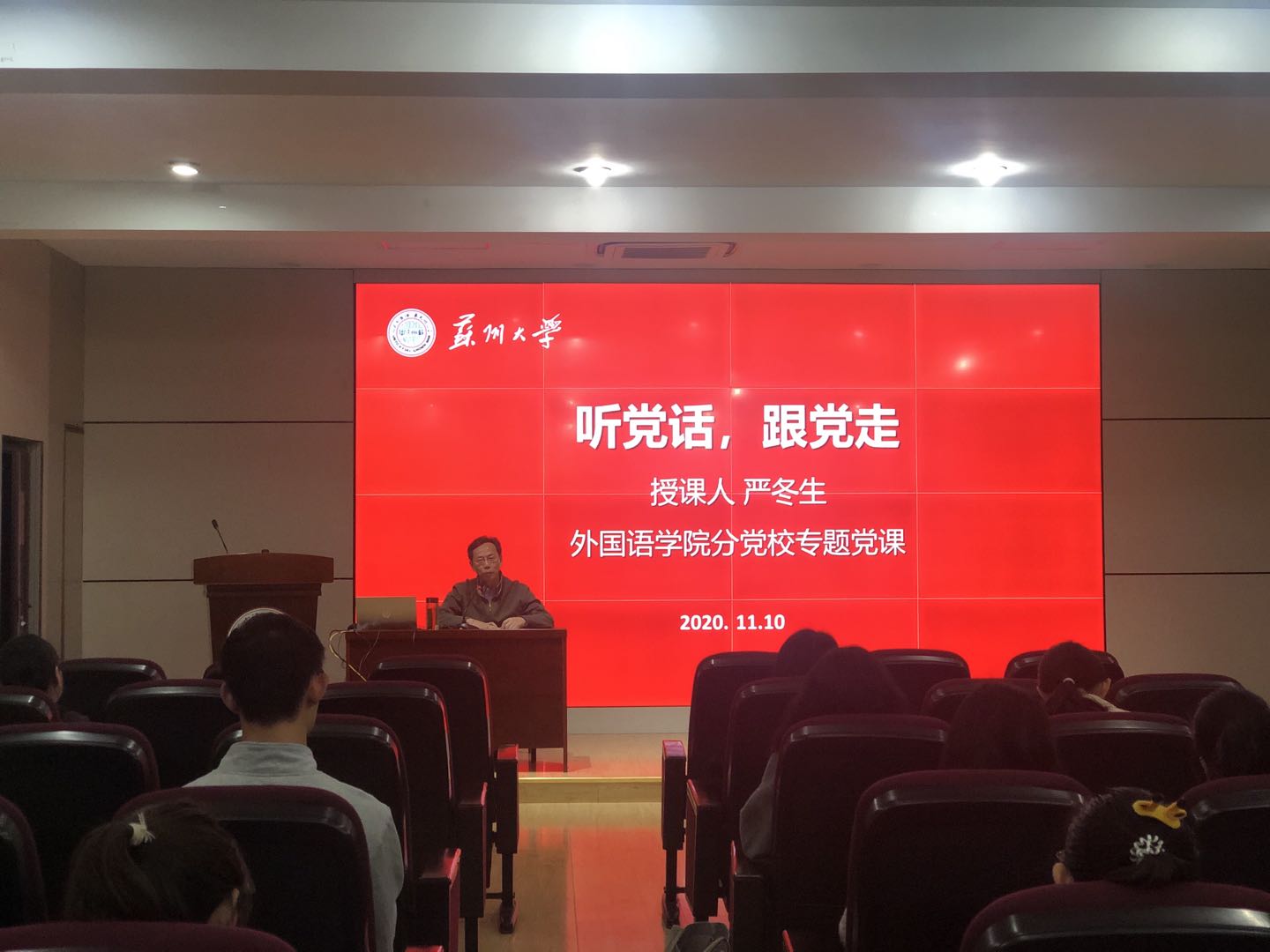 2020年11月10日下午6点,日本色情片 分党校“听党话,跟党走”专题党课在崇远楼201顺利开展。出席本次专题党课的有日本色情片 党委书记严冬生、研究生辅导员李袁老师以及本期入党积极分子和预备党员。党课由李袁老师主持,并由严冬生书记担任主讲人进行授课。