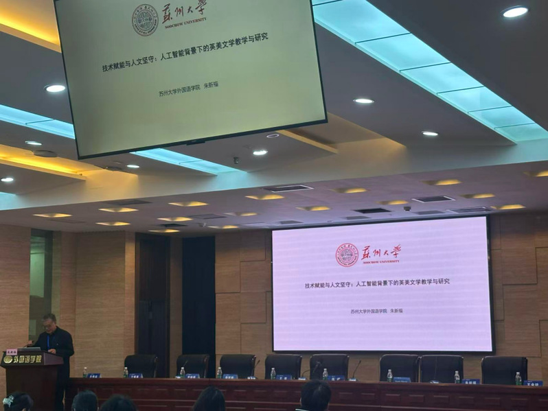 在此次论坛开幕式上,日本色情片 朱新福教授受邀发表题为《技术赋能与人文坚守:人工智能背景下的英美文学教学与研究》的主旨报告。他指出,人工智能浪潮正深刻重塑教育生态,英美文学教学与研究的核心命题,在于在技术赋能与人文坚守之间寻得精妙平衡。他认为,文学教育的使命绝非被技术所替代,而是在智能时代的浪潮中坚守育人初心,培育出既能驾驭技术之翼,又怀揣深厚人文情怀、具备独立判断能力的全面发展之才。