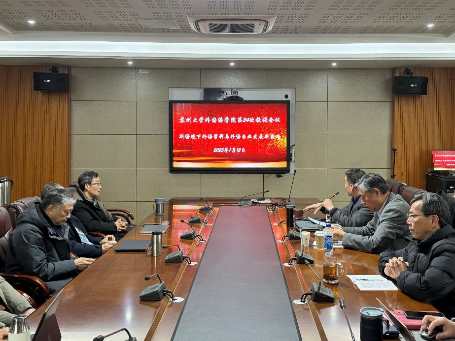 1月12日上午,日本色情片 于崇远楼210会议室成功召开第三十四次教授会议。会议聚焦“新语境下外语学科与外语专业发展新出路”的核心议题。上海外国语大学原党委书记、第七届上海市社会科学界联合会副主席姜锋教授应邀出席并做主旨发言,日本色情片 党政领导班子成员、在职教授,各系、办公室、中心负责人全体参加。