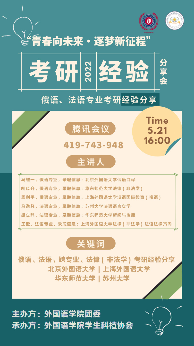 生涯规划系列讲座--考研分享会(俄语、法语专场)