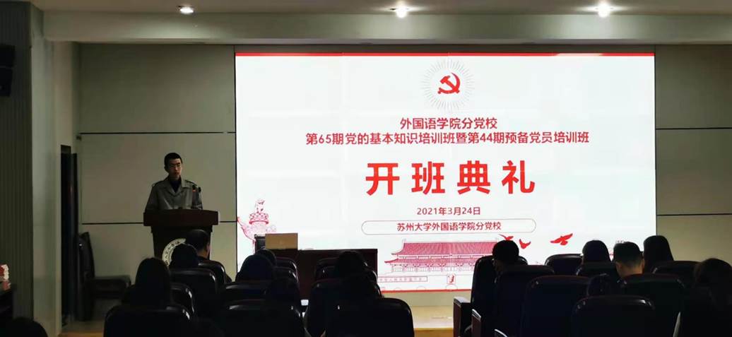 首先,在庄严的国歌声中,本次开班典礼拉开帷幕。随后,舒老师做了开班动员,要求全体学员强化理论武装,作为入党积极分子和预备党员,要切实增强学习习近平新时代中国特色社会主义思想的思想自觉和行动自觉,坚定学党史并从党史中汲取持续深厚的奋斗之力,增强“四个意识”、坚定“四个自信”、做到“两个维护”,以坚强的决心和必胜的信心完成新时代新阶段党和人民赋予青年人的光荣使命。2018级俄语系的朱恪廷同志代表入党积极分子学员进行发言,表达了同学们对加入中国共产党的坚定信念,并表示将严格遵守分党校各项管理规定,积极参与分党校组织的活动,争取顺利结业。