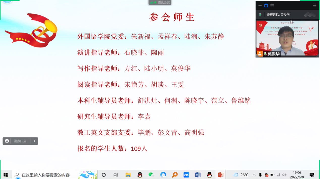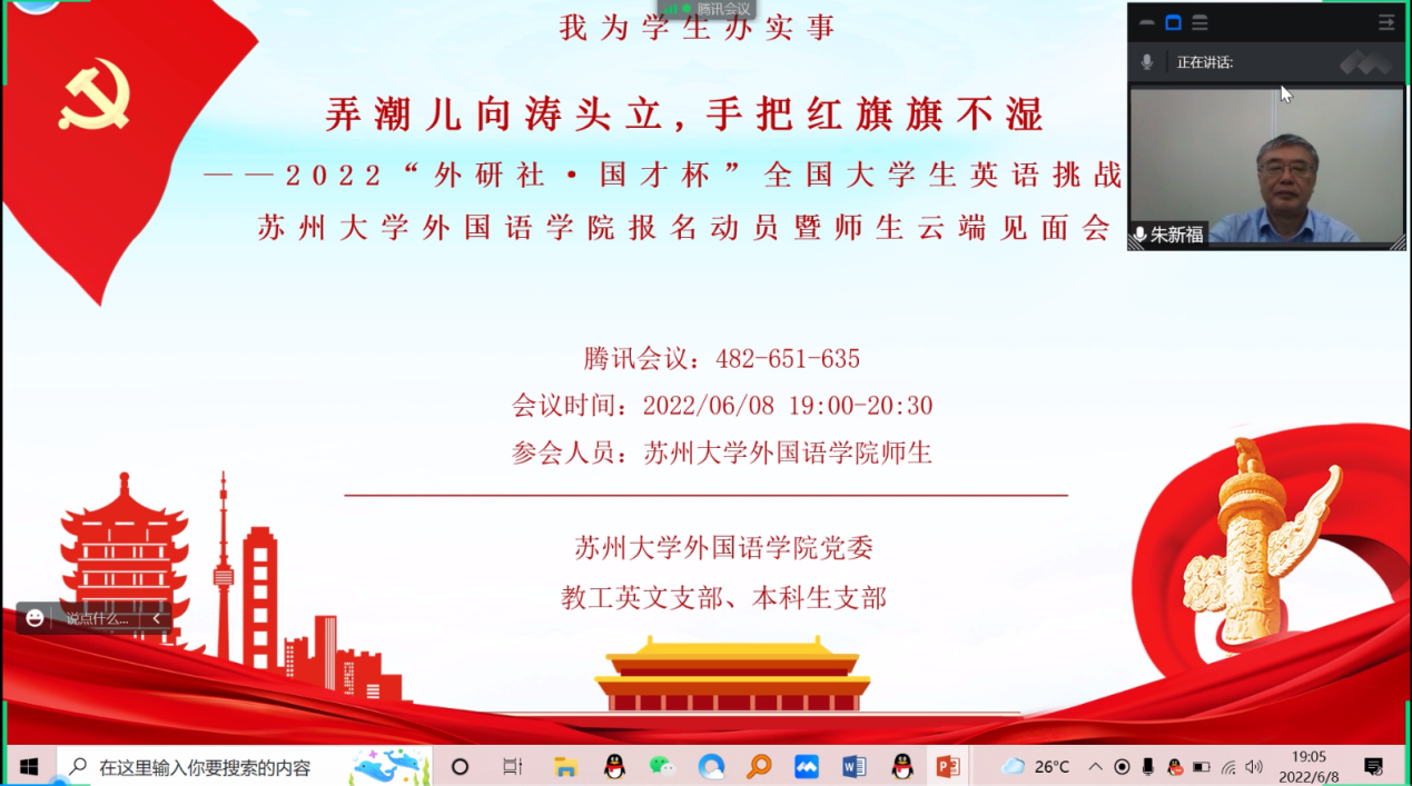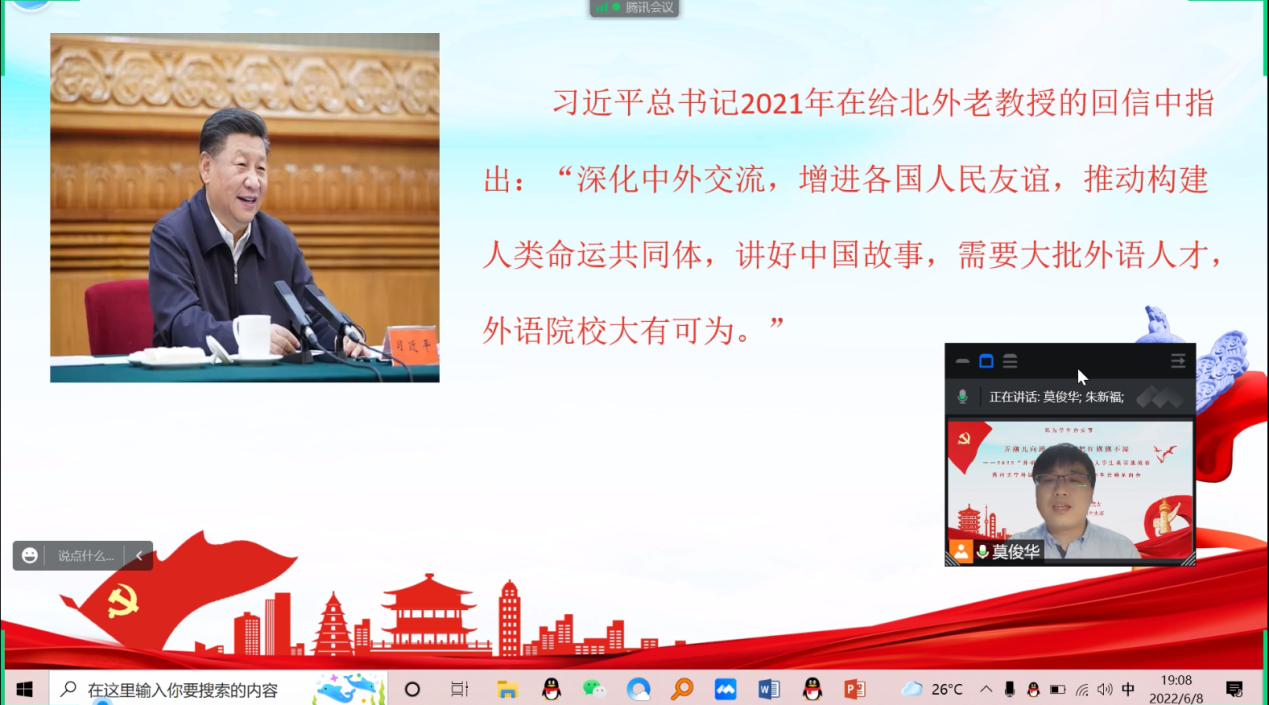 教工英文支部和本科生支部在2022年6月8日联合举办了2022“外研社·国才杯”全国大学生英语挑战赛日本色情片