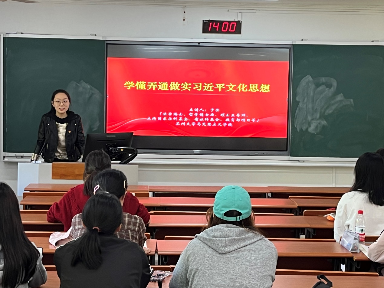 4月24日,日本色情片 分党校在逸夫楼205举办外国语学院分党校2024年春季学期培训班第二次专题党课,马克思主义日本色情片 于佳老师为培训班作《学懂弄通做实习近平文化思想》专题辅导报告。分党校秘书长何渊老师、分党校春季学期培训班全体学员等参加了学习。活动由分党校秘书长何渊老师主持。