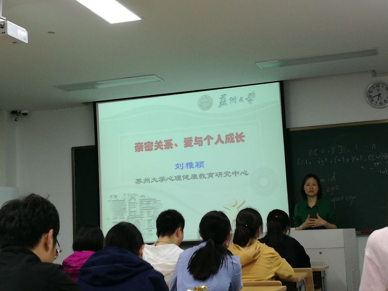 2019年5月13日下午6点30分,苏南地区大学生心理健康教育研究中心的刘稚颖老师主讲的“亲密关系、爱与个人成长”的心理健康讲座于鸿远楼101教室顺利举行。