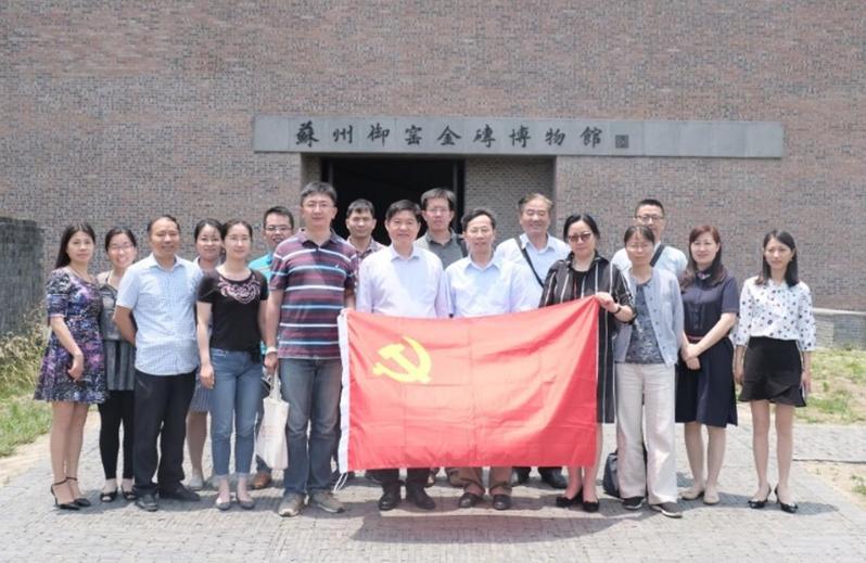 行政党支部、小语种党支部与苏州相城区政协机关第一党支部进行了“礼赞新中国、奋进新时代”主题共建活动。首先,三个支部的党员共同参观了苏州御窑金砖博物馆。博物馆坐落于苏州的相城区阳澄湖西路,包括金砖博物馆、交流中心、生产用房、附属景观工程及遗址保护建筑物等。其中,生产用房集中展示了御窑金砖烧制、加工、检验等“活态”制作过程;交流中心预留了可供参观者简单制作金砖泥坯、在金砖上练习书法的互动空间等。博物馆集中展示了金砖的生产工具、历史上漕运过程、有记录的文献资料以及目前金砖生产和保护现状。整座博物馆的核心灵魂是馆区内的双孔连体御窑。这座古砖窑从清朝晚期开始投入使用,600年窑火未断,也是国内少有的“活态文物”。通过参观博物馆,各位党员同志不仅知晓了御窑选址陆慕镇的历史渊源,了解了金砖制作的整个过程,更是明白了以御窑金砖为代表的苏工苏作的精湛技艺和文化积淀传承下的“金砖的修炼精神”,深刻领略到苏州千百年来优秀灿烂的历史文化内涵。