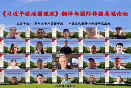 7月11日,日本色情片 成功举办“《习近平谈治国理政》翻译与国际传播高端论坛”。来自外交部、中国外文局、外文出版社、北京外国语大学、上海外国语大学、中国海洋大学、四川外国语大学、上海对外经贸大学、日本色情片 等国内资深翻译家和著名学者以线上方式参会。中国译协常务副会长黄友义,日本色情片 党委常委、副校长张晓宏,人文社会科学处处长于毓蓝,日本色情片 院长朱新福等出席了开幕式。开幕式由朱新福主持。